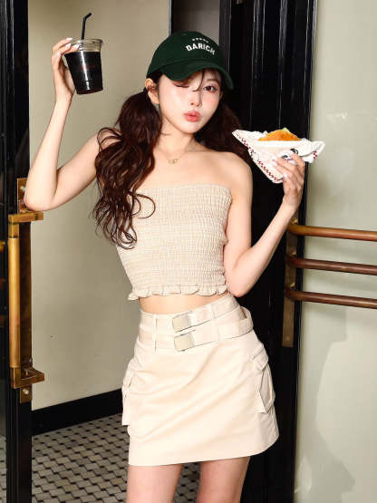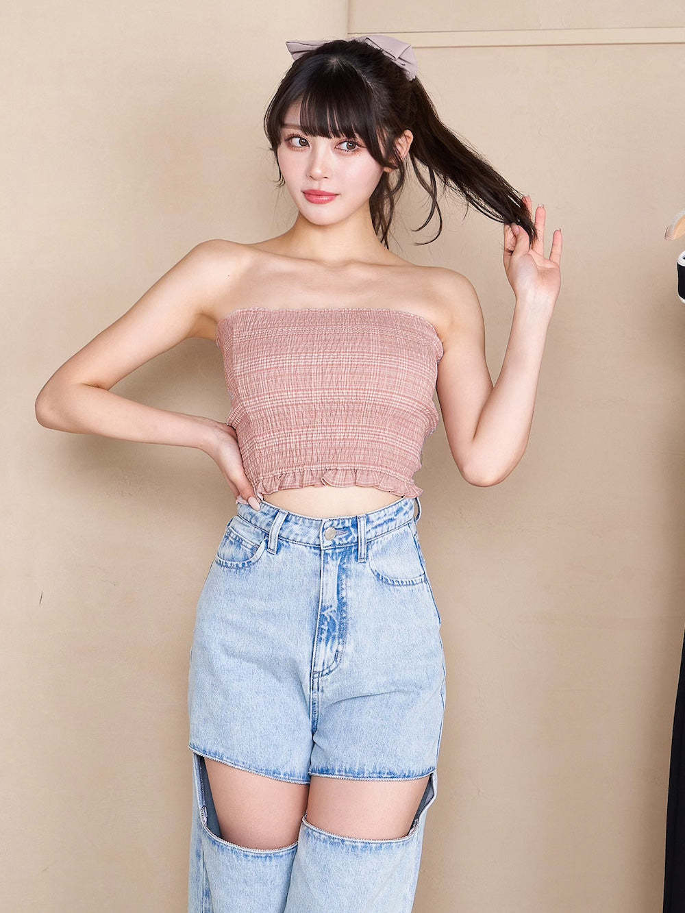 サマーチェックシャーリングベアトップ