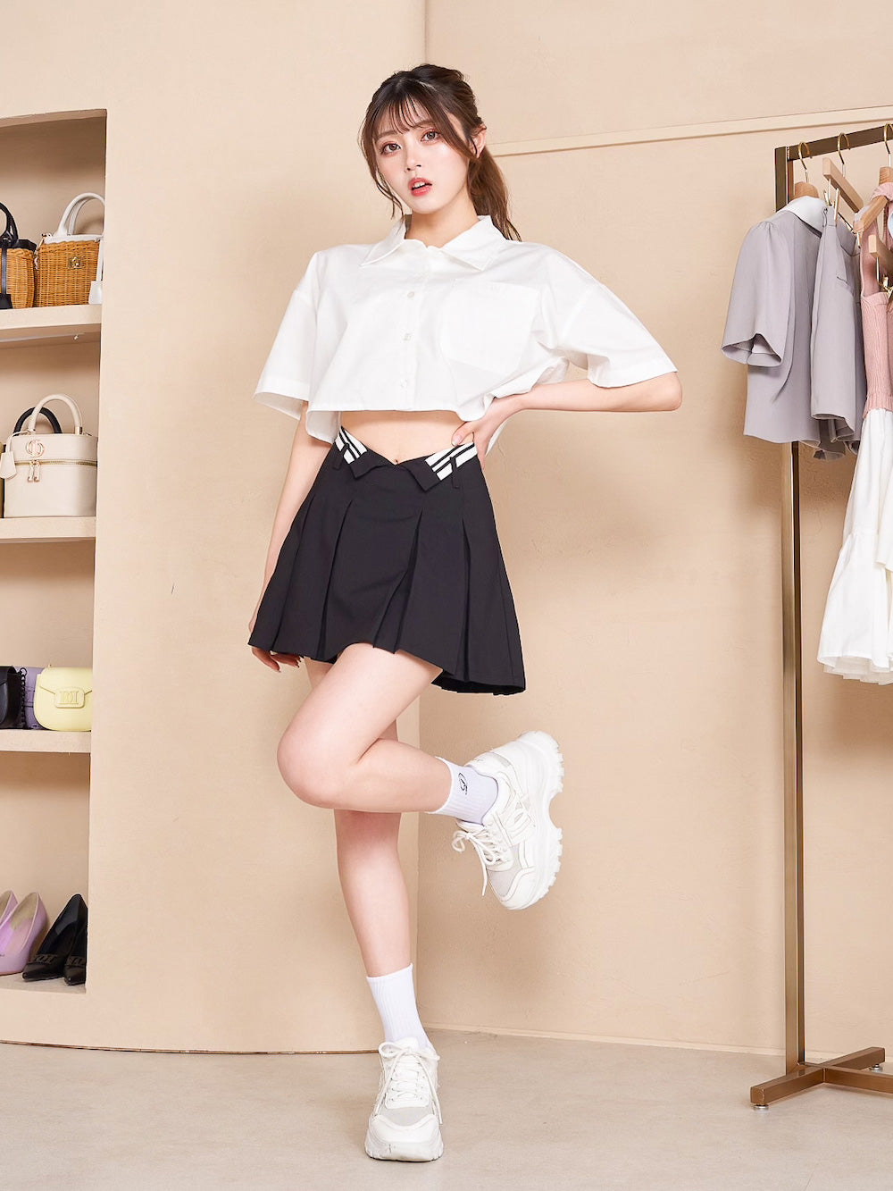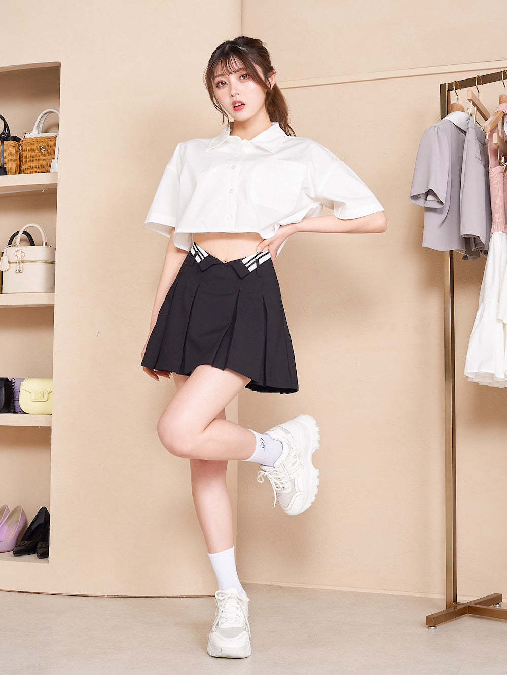 ウエストデザインプリーツミニスカート