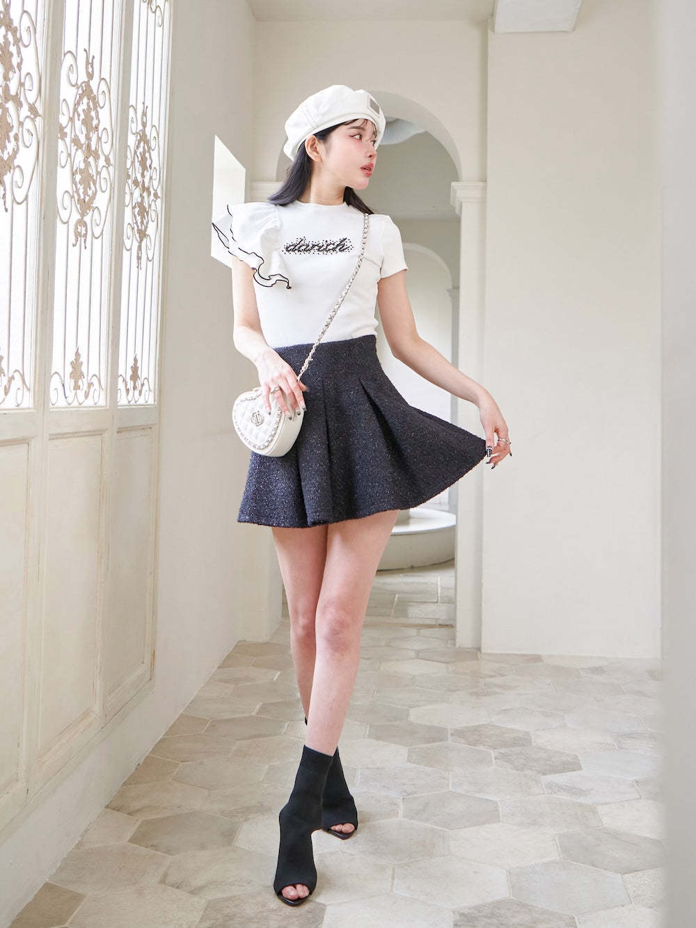 ラメツイードハイウエストフレアスカート