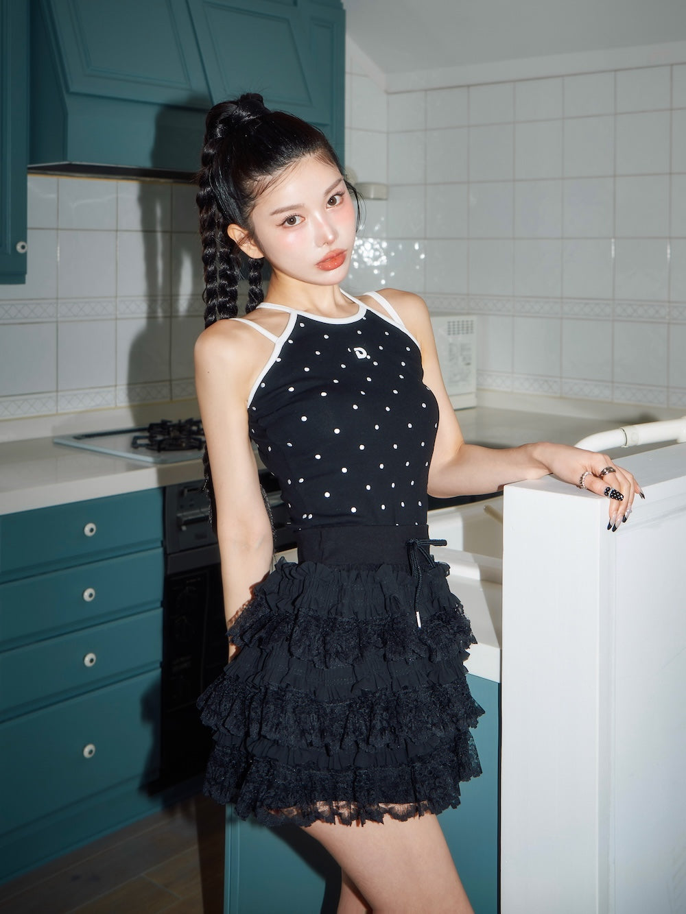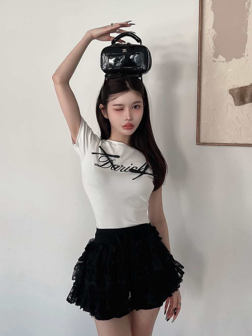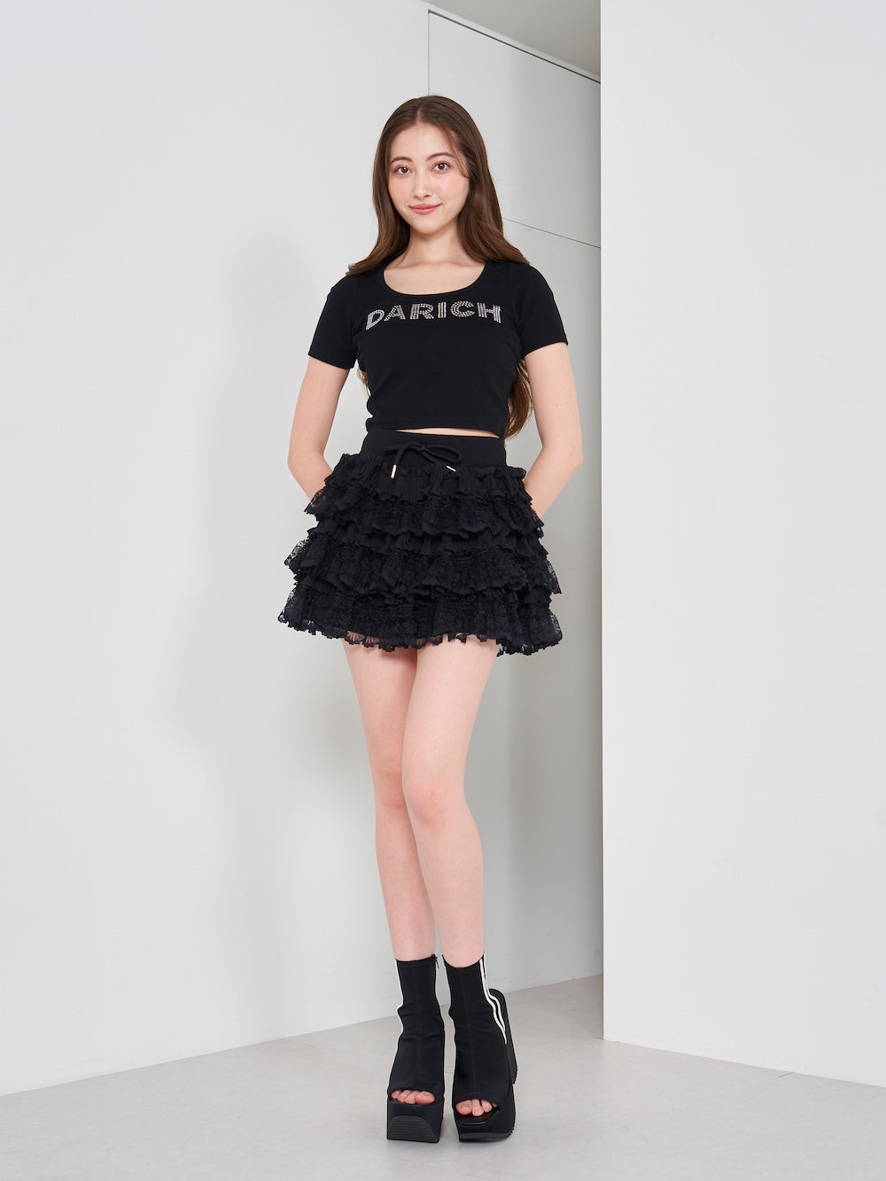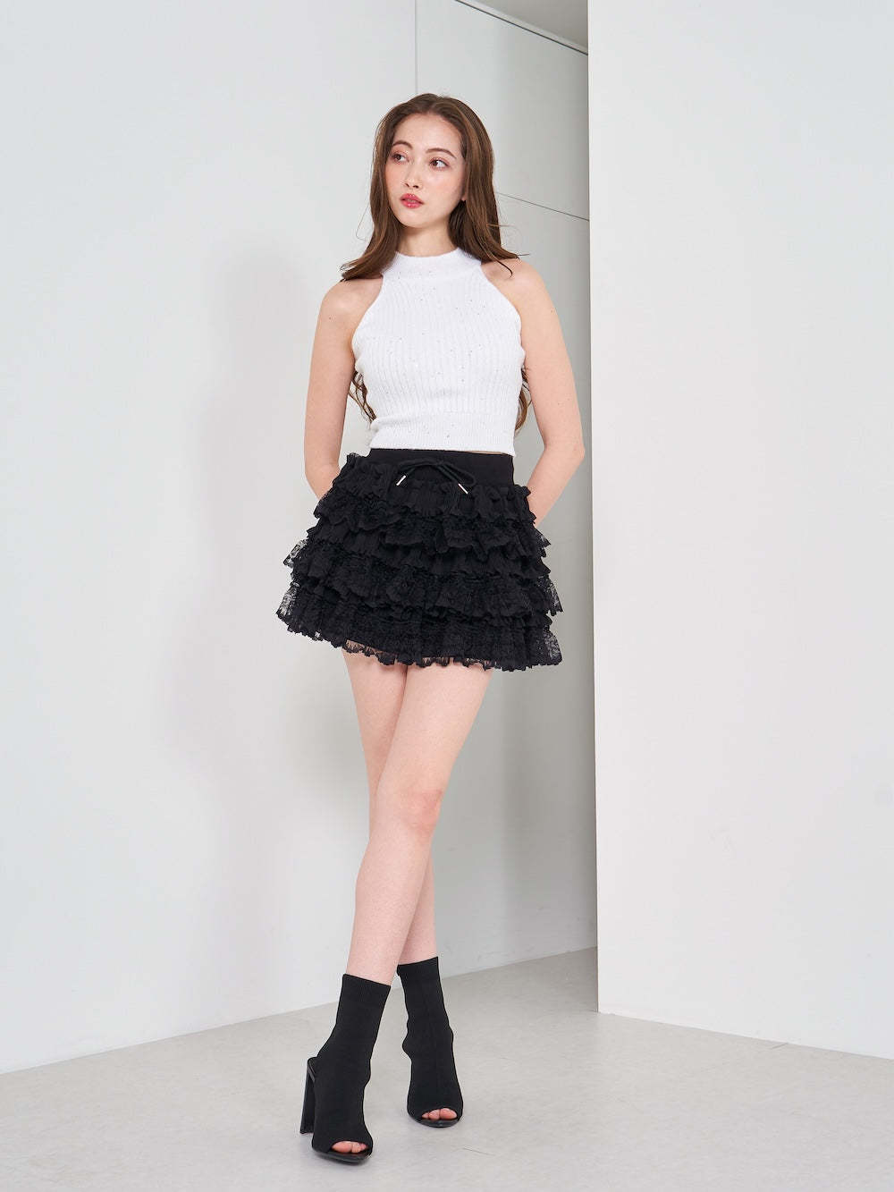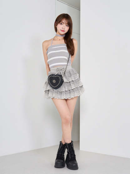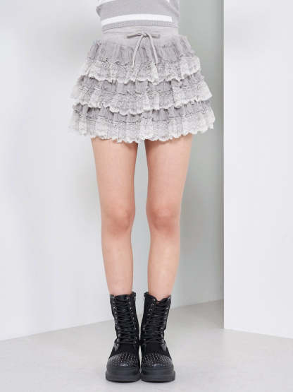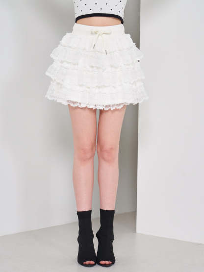 ボリュームレースフレアミニスカート