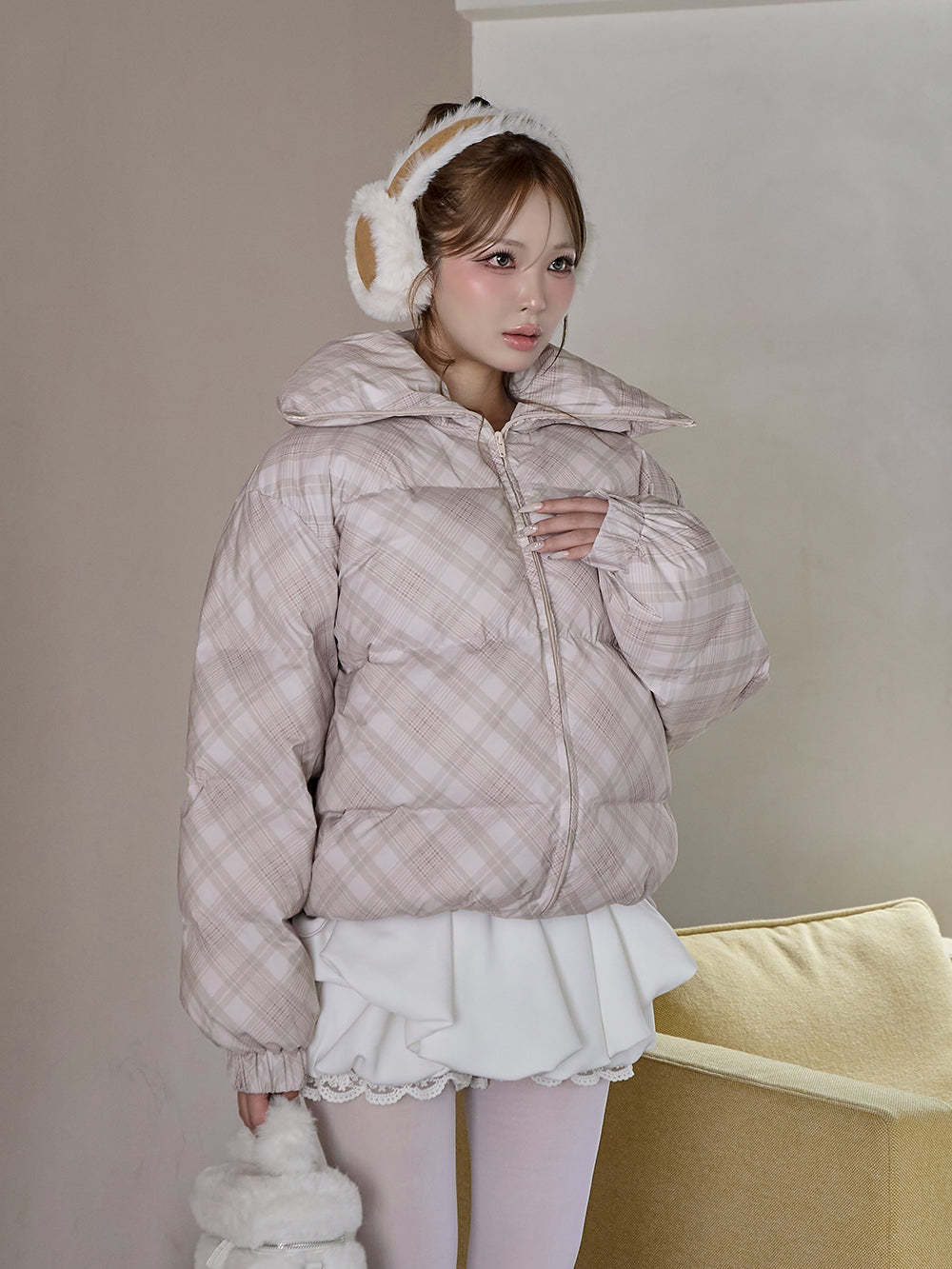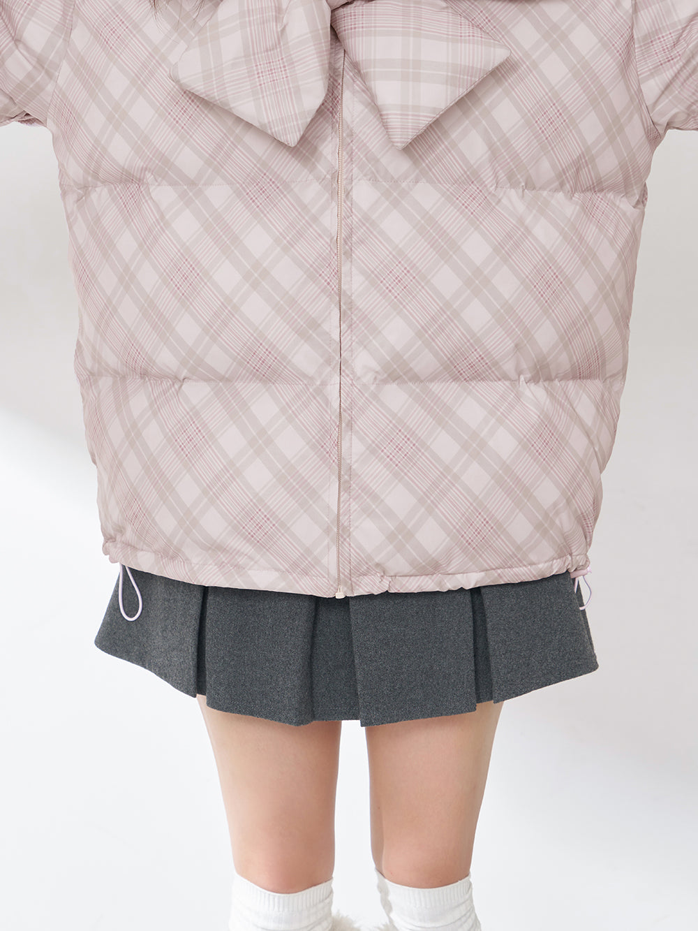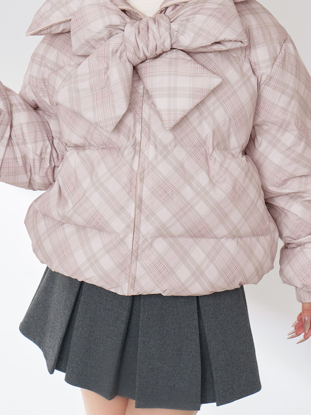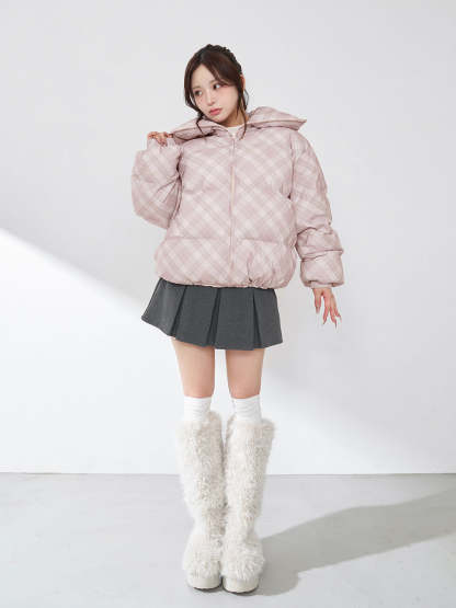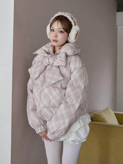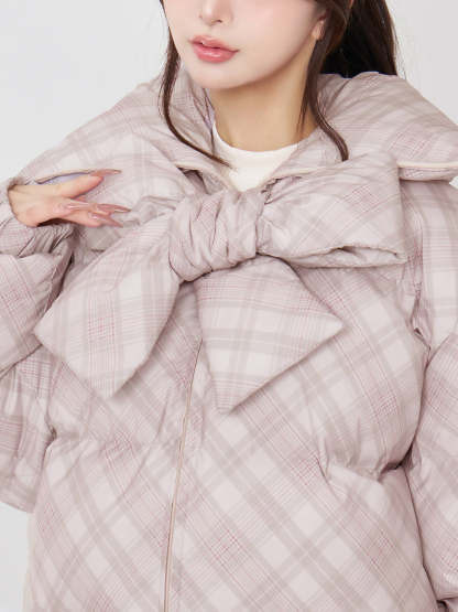 【Darichロゴガーメント&DDロゴベロアハンガー付き】リボンチェックダウンジャケット