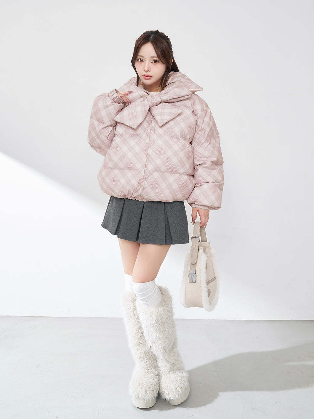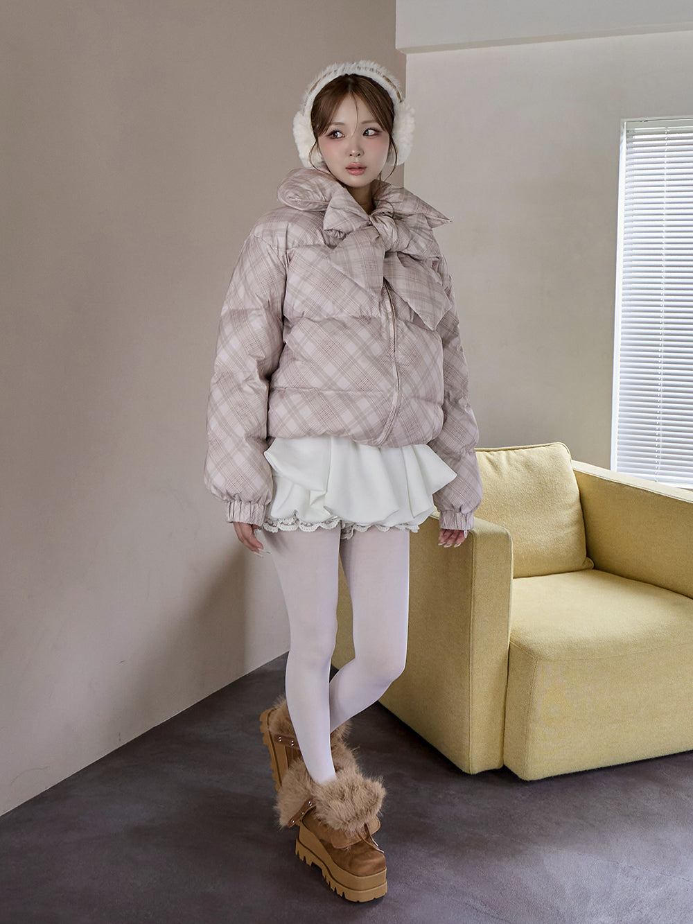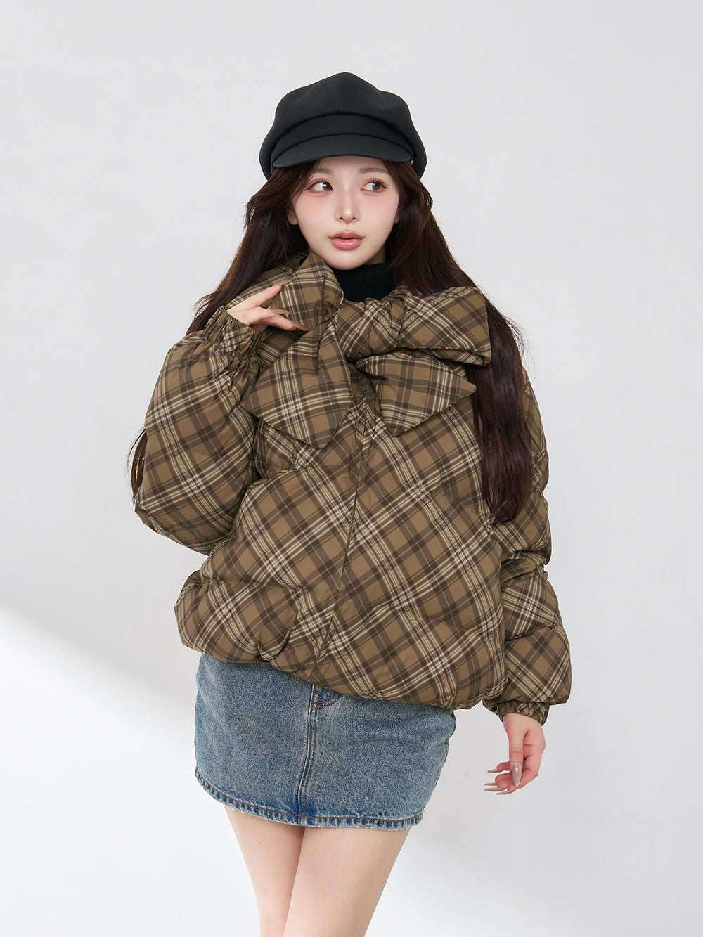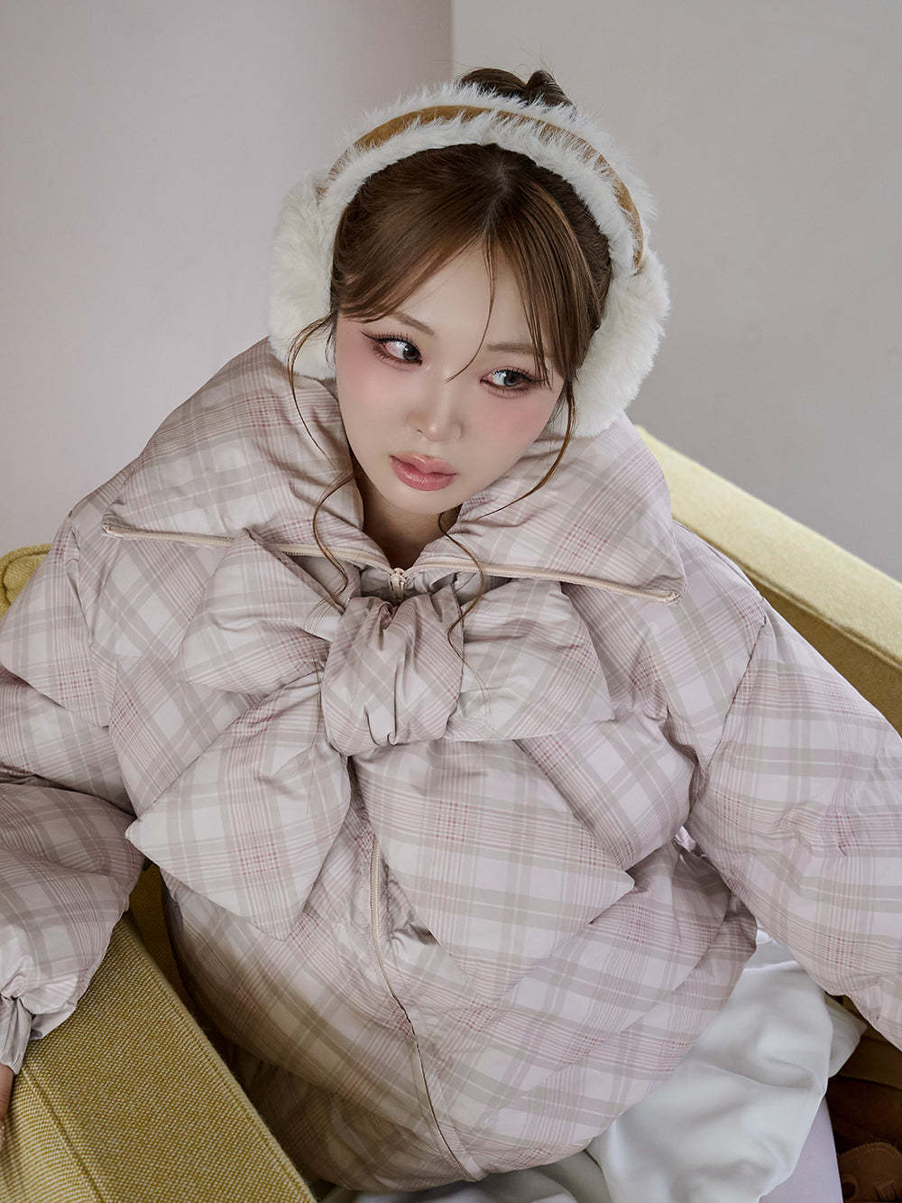 【Darichロゴガーメント&DDロゴベロアハンガー付き】リボンチェックダウンジャケット
