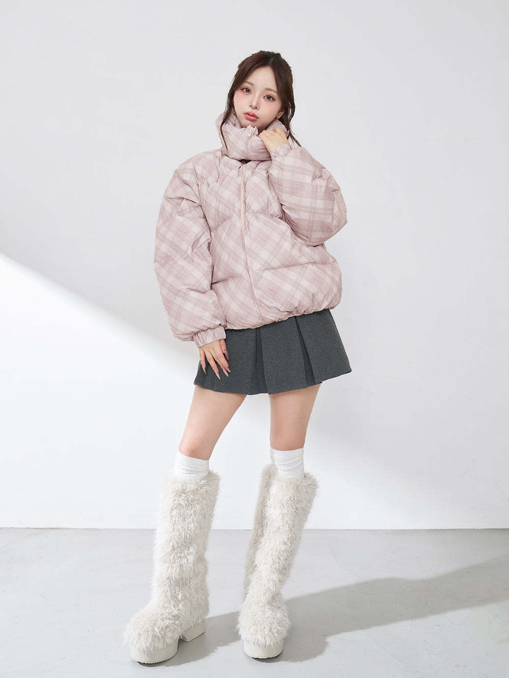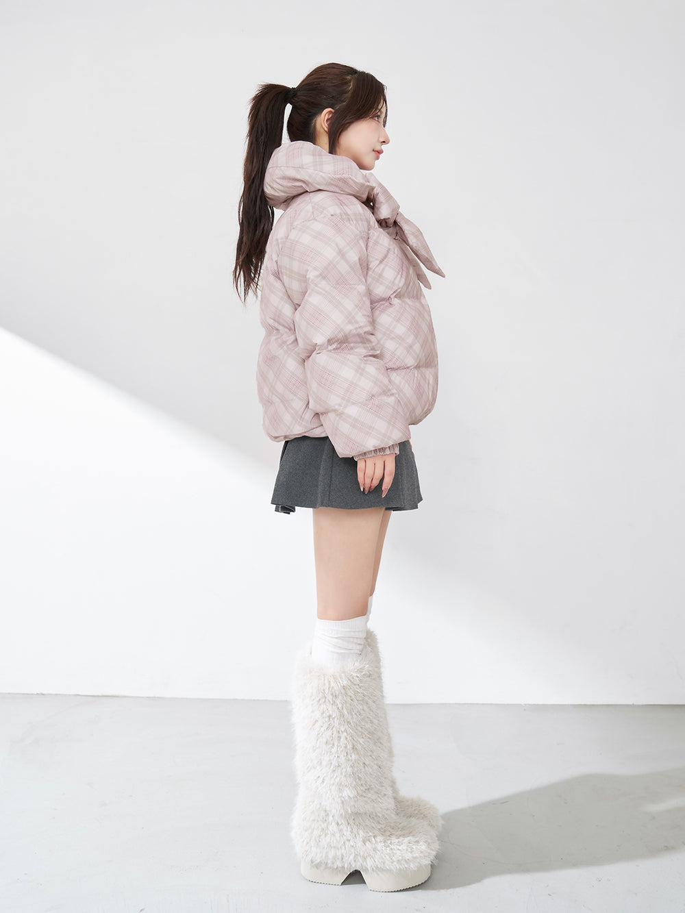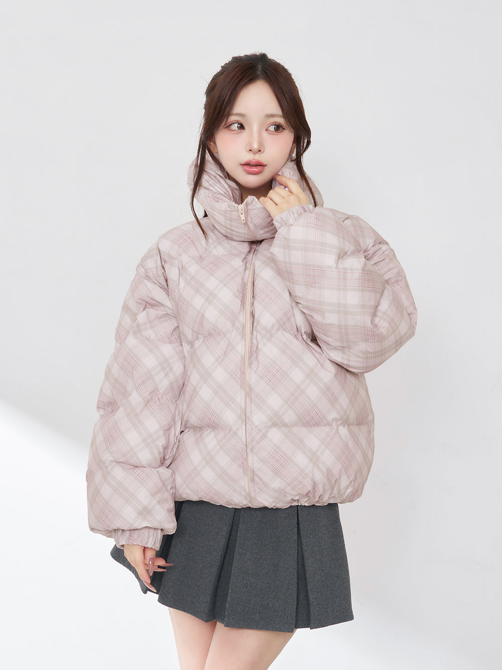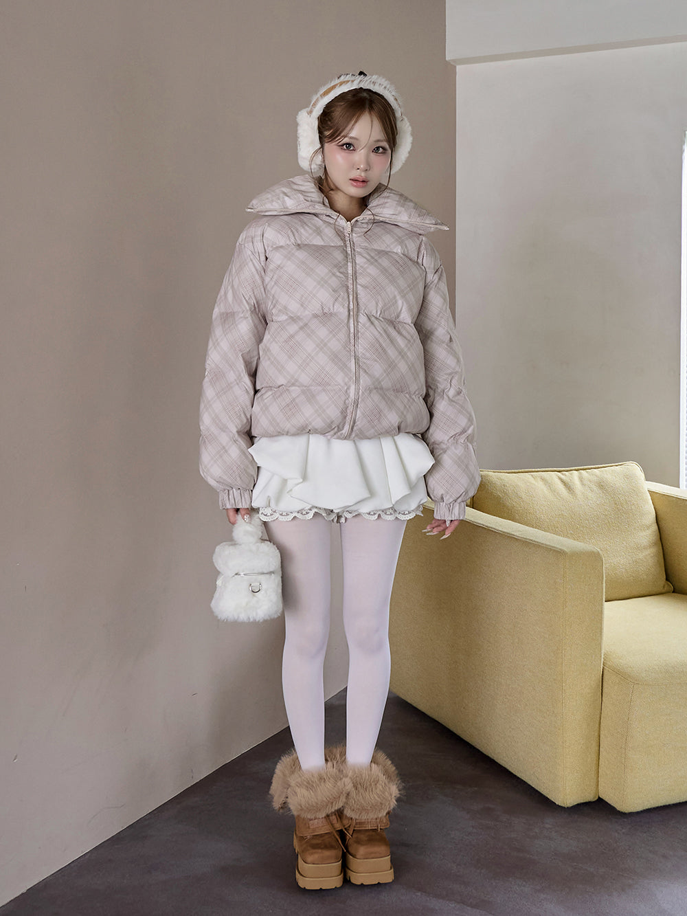 【Darichロゴガーメント&DDロゴベロアハンガー付き】リボンチェックダウンジャケット